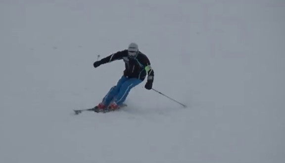 ズレのないレールターンの中で膝を左右に動かしながら滑ってみます。